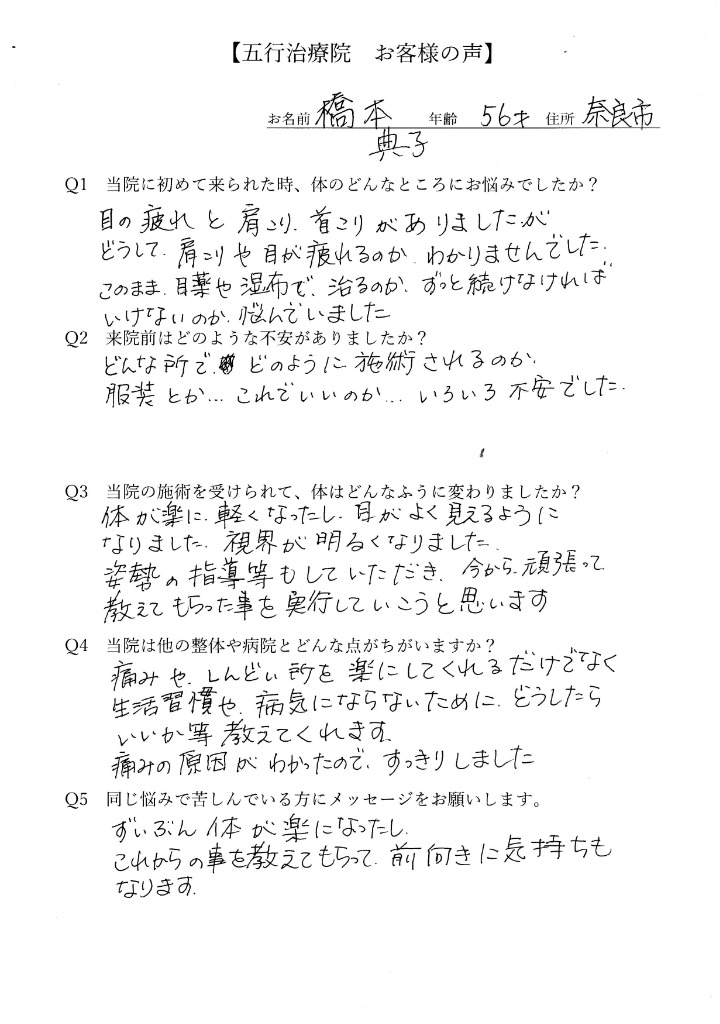 原因がわからない肩こりに悩んでいた橋本さん