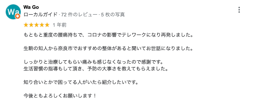 WA GOさんからのGoogleクチコミ