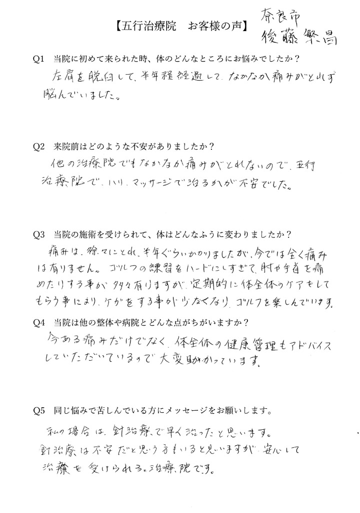 肩の痛みでゴルフを楽しめなかった後藤繁昌さん