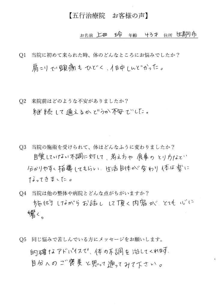 ひどい肩こりと頭痛に悩んでいた上田玲さん