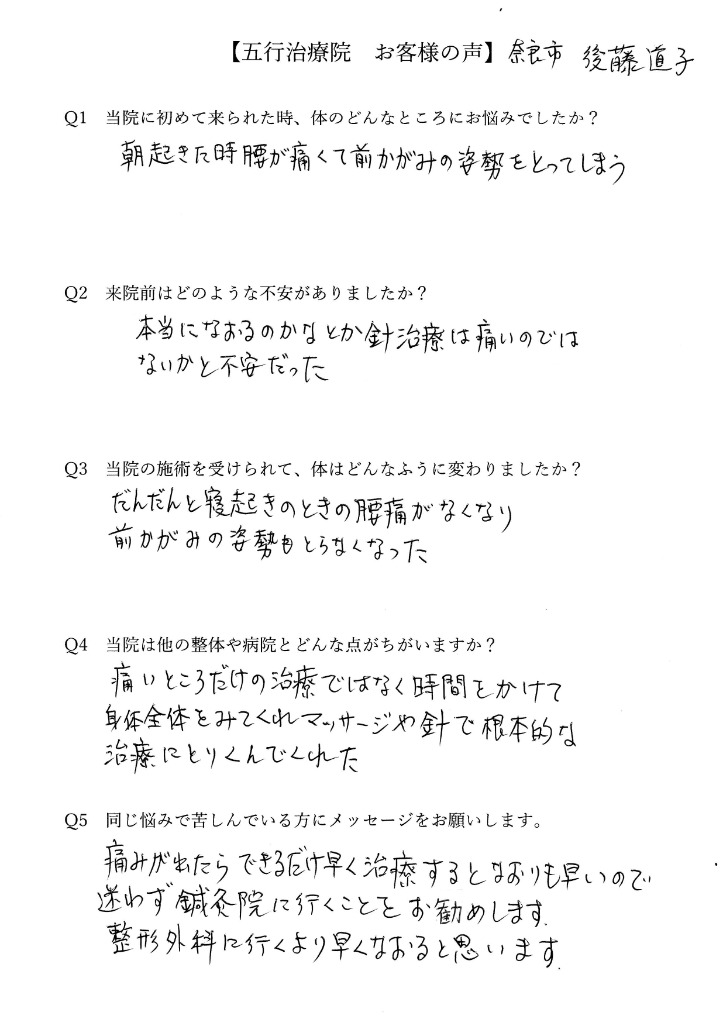 腰痛で屈んで歩いていた後藤さん